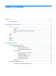 Table of contents 1 Welcome .......................................................................................................................................................... 1 Finding information ............................................................................................................................... 2 2 Getting to know your computer ..................................................................................................................... 4 Top ....................
