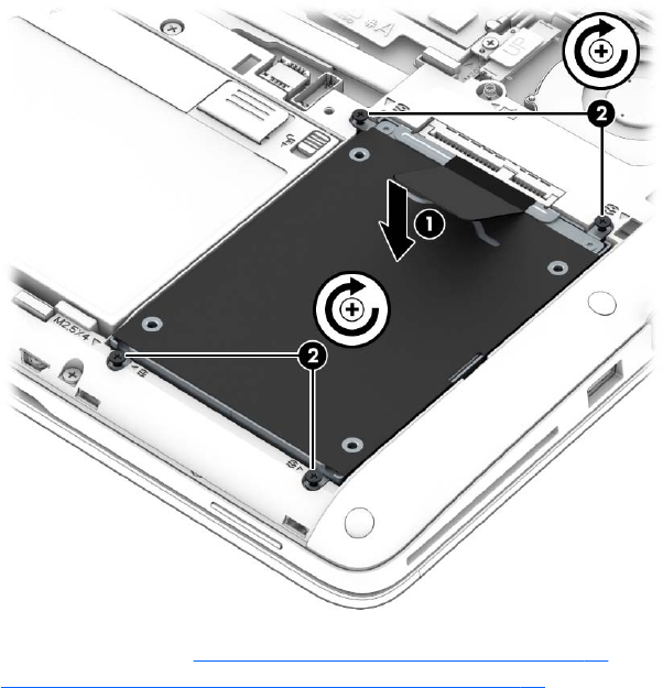 2. Breng de vier schroeven (2) weer aan om de vaste schijf te bevestigen.