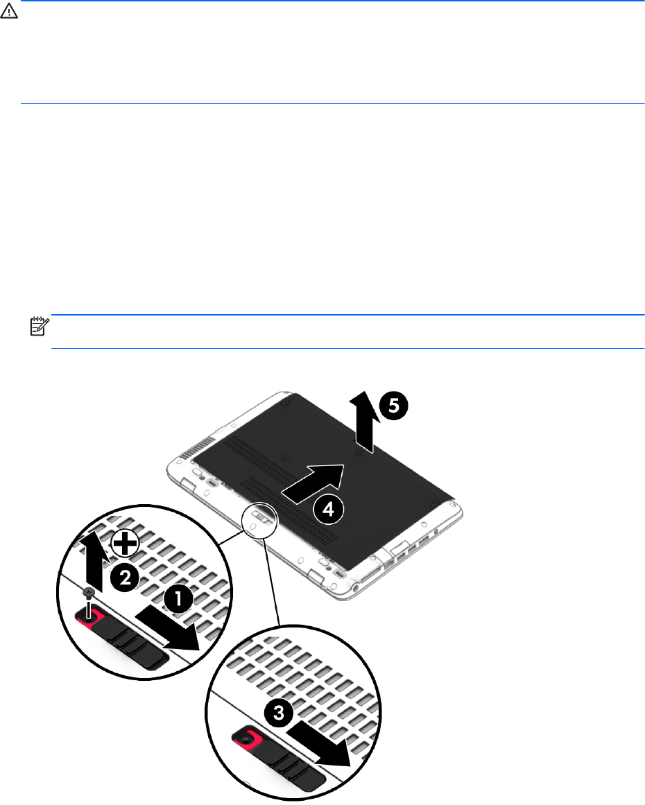 1. Retournez l'ordinateur, faites glisser le loquet de dégagement du cache de service en position