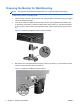 Adjusting the Tilt For optimal viewing, adjust the screen tilt to your own preference. 1. Face the front of the monitor and hold the base so that you do not topple the monitor while changing the tilt. 2. Adjust the tilt by moving the top edge of the monitor either toward or away from you, without touching the screen. Figure 2-16 Adjusting the Tilt Installing a Cable Lock You can secure the monitor to a fixed object with an optional cable lock available from HP.