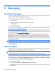 13 Connections You can use your HP iPAQ to connect and exchange information with other handheld devices, computers, and other networks. You can connect using: ● Wi-Fi ● Bluetooth ● Phone NOTE: You can also use your HP iPAQ as a wireless modem. For more information, see Internet Sharing on page 90. Connect by pressing Start > Settings > Connections. Use Wireless Manager Use Wireless Manager to turn the wireless connections for Wi-Fi, Bluetooth, and Phone on and off.