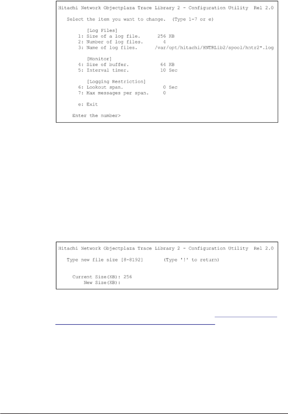- Displaying the Hitachi Network Objectplaza Trace Library setup menu