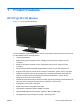 1 Product Features HP 2311gt 3D LCD Monitor Figure 1-1 HP 2311gt 3D LCD Monitor The HP LCD (liquid crystal display) monitors have an active matrix, twisted nematic (TN) screen with an LED backlight and the following features: ENWW ● Large diagonal display ● Maximum 2D graphics resolution 1920 x 1080 @ 60Hz plus full-screen support for lower resolutions ● Maximum 3D graphics resolution 1920 x 540 @ 60Hz plus full-screen support for lower resolutions ● 3D Passive Film Patterned Retarder (FPR) Glas