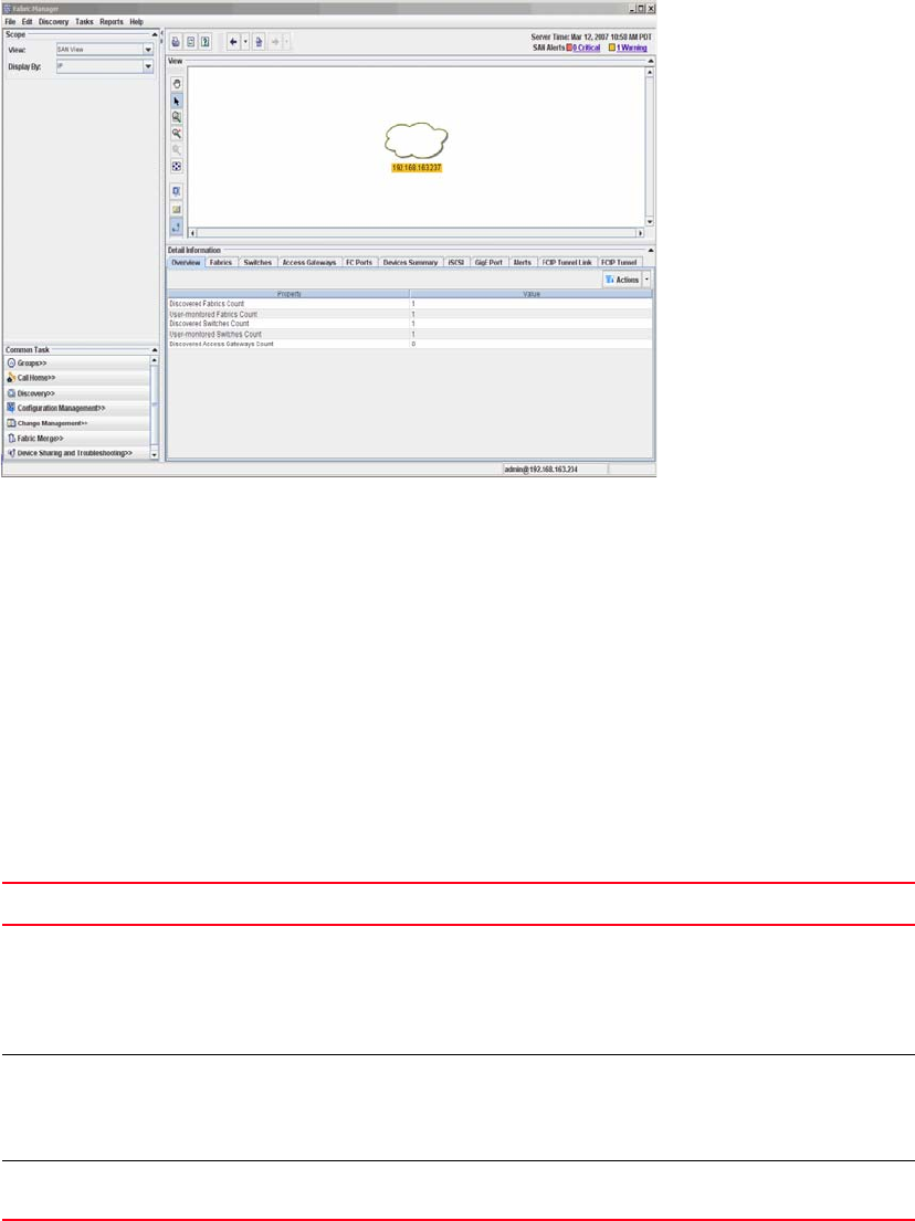 3. View panel - Displays the SAN topology, including discovered and monitored devices and