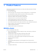 B Technical Specifications NOTE: All performance specifications are provided by the component manufacturers. Performance specifications represent the highest specification of all HP's component manufacturers' typical level specifications for performance and actual performance may vary either higher or lower. ZR2040w Model Display 50.8 cm diagonal 20 inches diagonal Type TFT LCD Viewable Image Size 44.28 x 24.9 cm Tilt -5 to 25º Maximum Weight (Unpacked) 3.8 kg 8.44 lbs Height 35.92 cm 14.