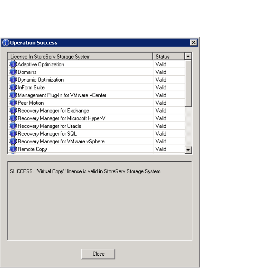 • License In StoreServ Storage System: This column shows the list of licenses on the HP 3PAR