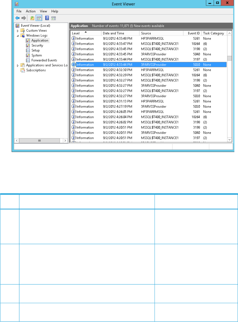 message indicates that VSS has released the HP 3PAR VSS Provider