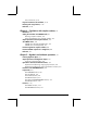 Chapter 8 – Vectors, 8-1 Entering vectors, 8-1 Typing vectors in the stack, 8-1 Storing vectors into variables in the stack, 8-2 Using the Matrix Writer (MTRW) to enter vectors, 8-2 Simple operations with vectors, 8-5 Changing sign, 8-5 Addition, subtraction, 8-5 Multiplication by a scalar, and division by a scalar, 8-6 Absolute value function, 8-6 The MTH/VECTOR menu, 8-7 Magnitude, 8-7 Dot product, 8-7 Cross product, 8-8 Reference, 8-8 Chapter 9 – Matrices and linear algebra, 9-1 Entering matrices in the