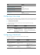Task Remarks Configuring a priority mapping table Optional. Configuring a port to trust packet priority for priority mapping Optional. Configuring a priority mapping table The device provides the following types of priority mapping table. Table 8 Priority mapping tables Priority mapping Description dot11e-lp 802.11e-local mapping table. dot1p-lp 802.1p-local mapping table. dscp-lp DSCP-local mapping table. lp-dot11e Local-802.11e mapping table. lp-dot1p Local-802.1p mapping table.