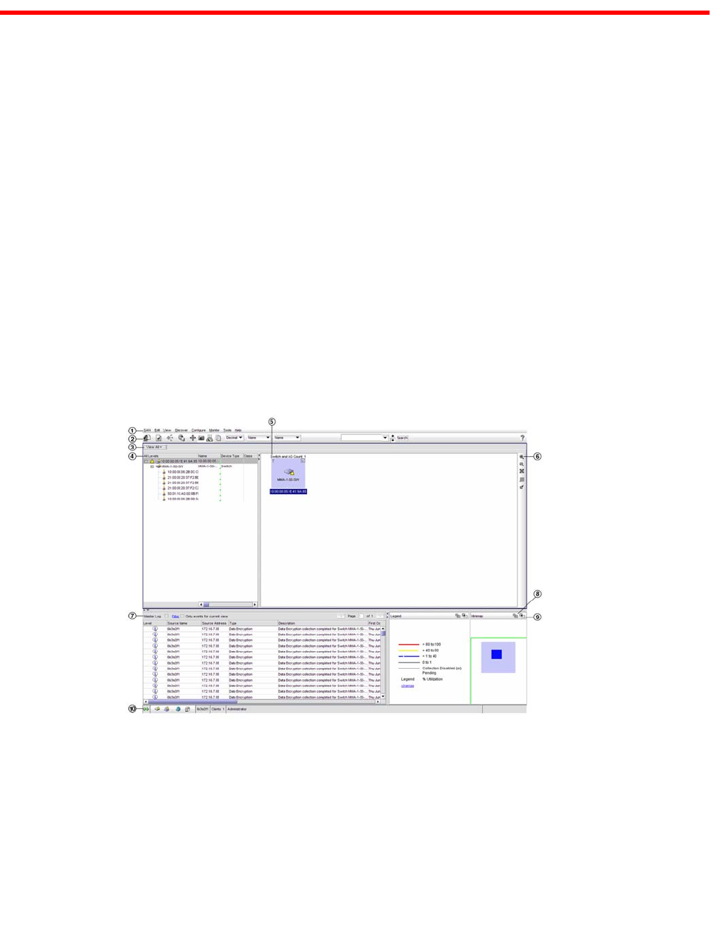 1. Menu Bar - Lists commands you can perform on the SAN.