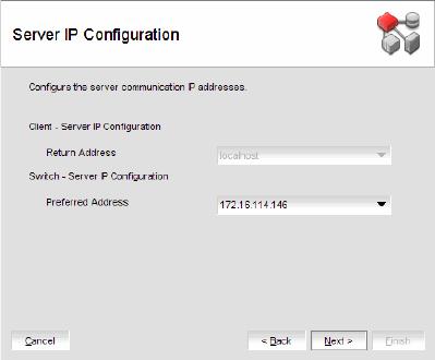 b. Select an address from the Switch - Server IP Configuration Preferred Address list.