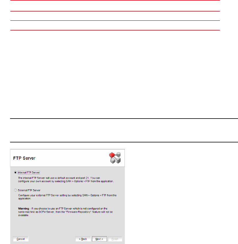 17. Select Internal FTP Server or External FTP Server on the FTP Server screen and click Next.