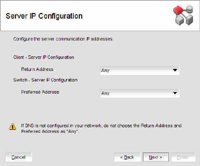 b. Select an address from the Switch - Server IP Configuration Preferred Address list.