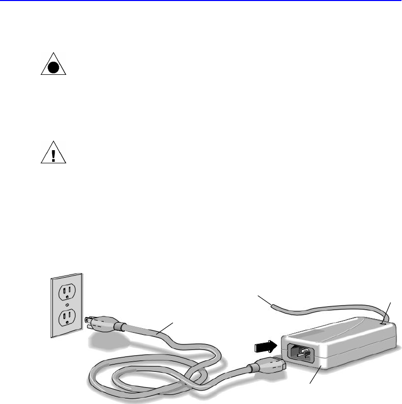 end to a wall outlet or power strip. (The power plug and outlet may look