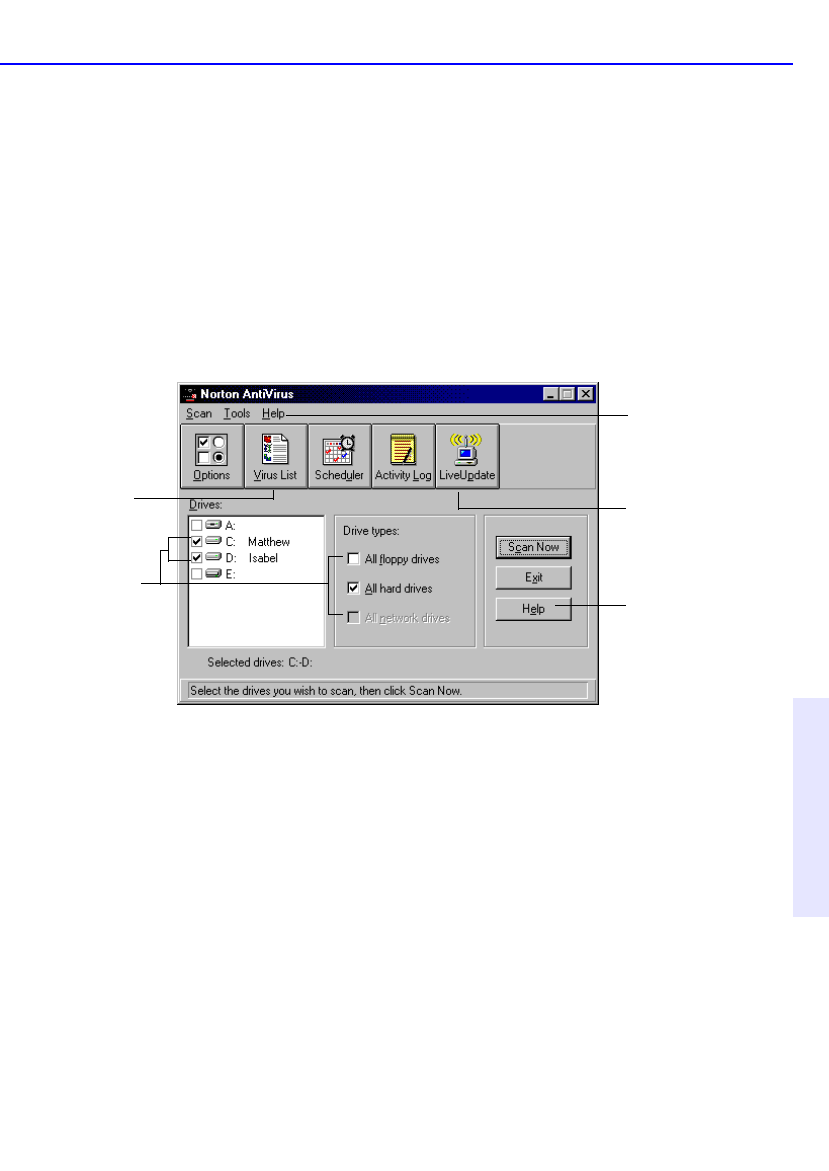 ■ Click the Help button on any Norton AntiVirus screen.