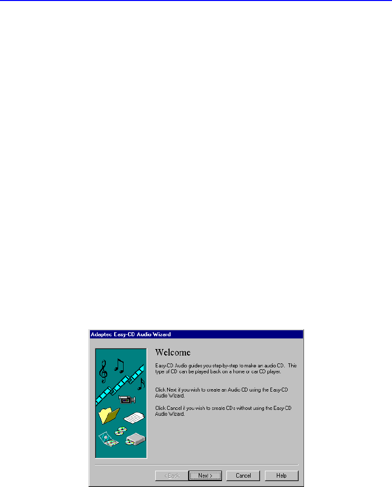 The Wizard appears when you first start Easy-CD Audio and guides you