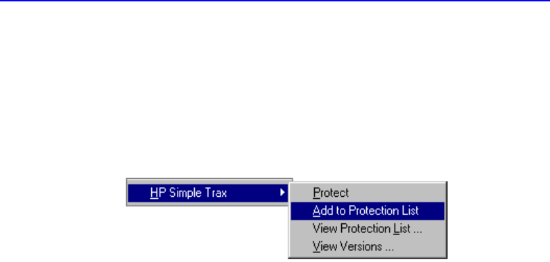 3. Point to HP Simple Trax and click Add to Protection List from the HP