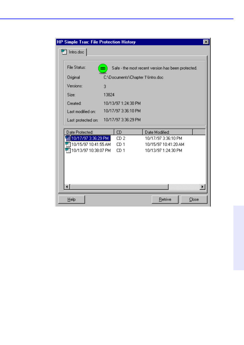 File Protection History dialog box and click the Retrieve button. Older