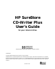 HP SureStore CD-Writer Plus User’s Guide for your internal drive Hewlett-Packard Company, 800 S. Taft Ave., Loveland, CO 80537 C4392-90100 Copyright 1998. Hewlett-Packard Company. All rights reserved. Hewlett-Packard is a registered trademark of the Hewlett-Packard Company. Microsoft and Windows are U.S. registered trademarks of Microsoft Corporation. Pentium is a U.S. registered trademark of Intel Corp.