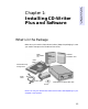 Chapter 1: Installing CDWriter Plus and Software Chapter 1: Installing CD-Writer Plus and Software What’s in the Package Make sure you have the items shown below. (Keep the packaging in case you need to transport the CD-Writer Plus drive.