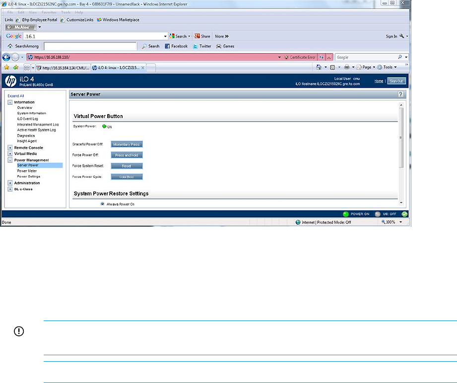 Figure 2 iLO server power controls