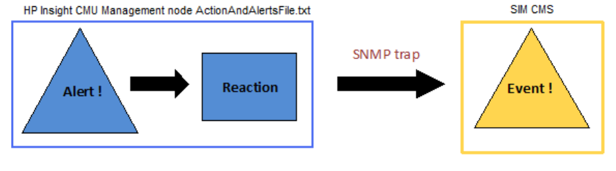 like SNMP traps. Create an alert reaction for the HP Insight CMU alert you want to convey. For