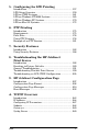 Table of Contents 1. Introducing the HP Jetdirect Print Server Introduction ............................................................................. 7 Supported Print Servers.......................................................... 8 Supported Network Protocols ................................................. 9 Security Protocols .................................................................. 11 Supplied Manuals .................................................................. 14 HP Support .....