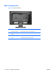 Rear Components Figure 2-2 Rear Components 4 Component Function 1 AC Power Connector Connects the AC power cord to the monitor. 2 Audio Connector (select models) Connects the audio cable to the monitor. 3 DVI-D (select models) Connects the DVI-D cable to the monitor. 4 VGA Connects the VGA cable to the monitor.