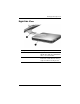 Identifying the Components Docking Station Components Front View 1–2 Component Description 1 Docking stand Holds the tablet PC when it is docked. 2 Release handle Ejects the tablet PC from the docking stand. 3 Docking connector Connects to the tablet PC. 4 Docking eject pin Disconnects the tablet PC from the docking stand docking connectors when the release handle is pulled. 5 Docking restraint latch Secures the tablet PC to the docking stand.
