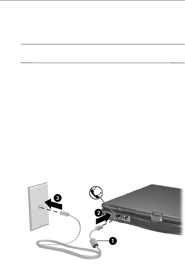 3. Plug the modem cable into the RJ-11 (modem) jack 2 on the