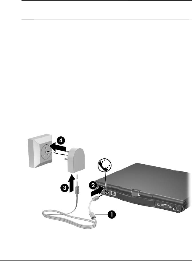 3. Plug the modem cable into the RJ-11 (modem) jack 2 on the