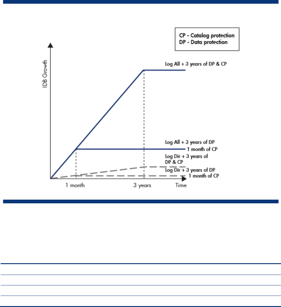 The simplified graph in Figure 3 presents the difference in IDB growth when catalog protection is set