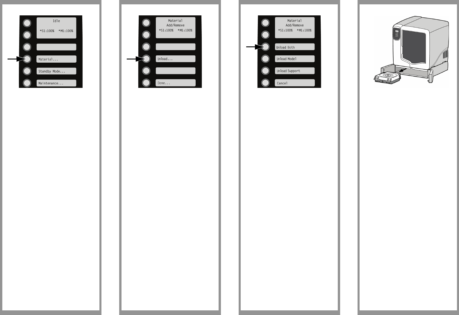 材料ベイのドアを開き、モデル材料カートリッジとサ
