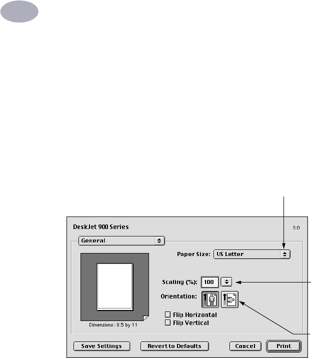 You control settings such as paper size, scaling, and page orientation from the