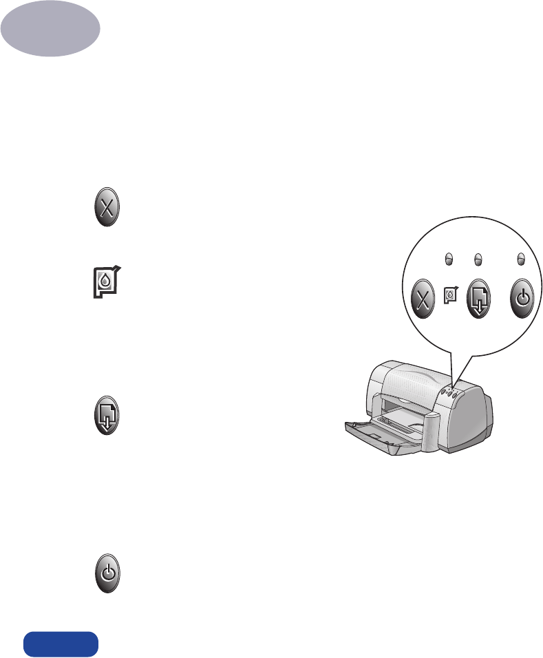The HP DeskJet printer buttons (shown below) let you turn the printer on and off,