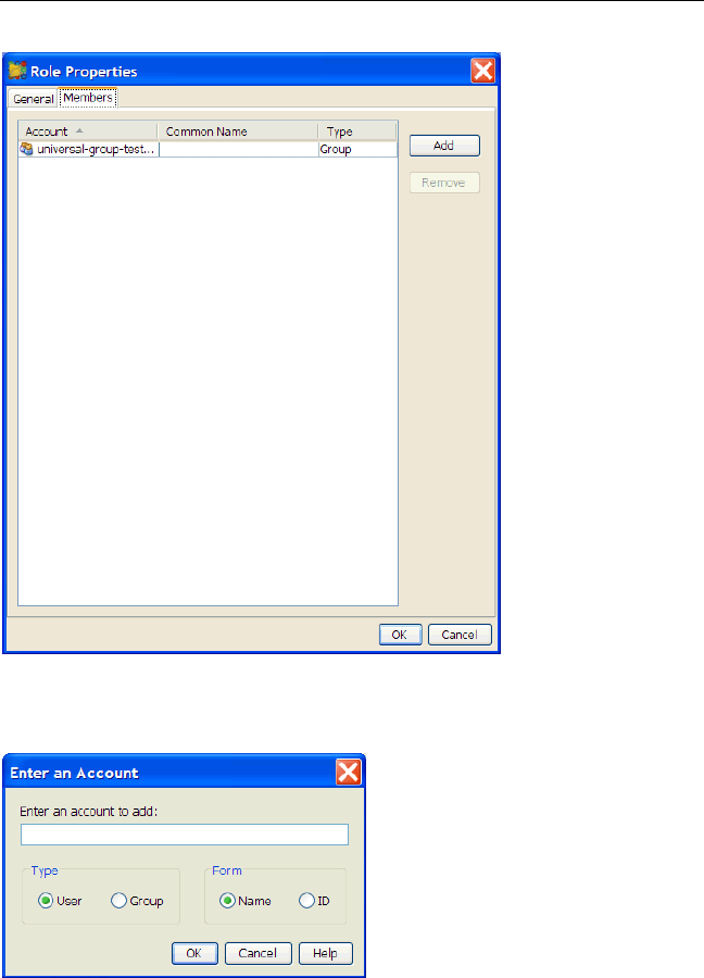 Click Add to assign accounts to the role. The Enter an Account dialog