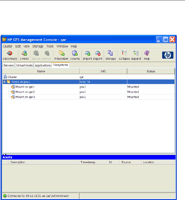 The Filesystems tab shows all PSFS filesystems in the cluster.