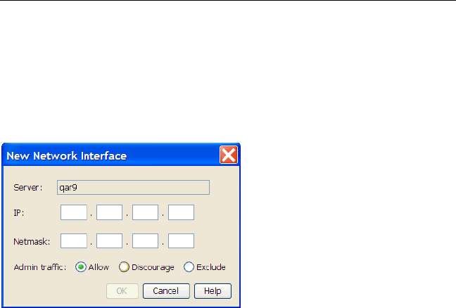 • To add a network interface, select the server for that interface on the