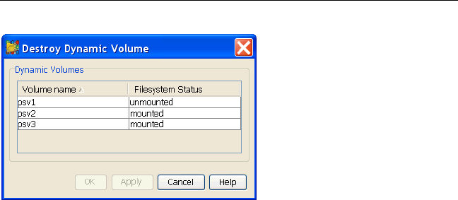 options that you select. When the volume is destroyed, any filesystem on