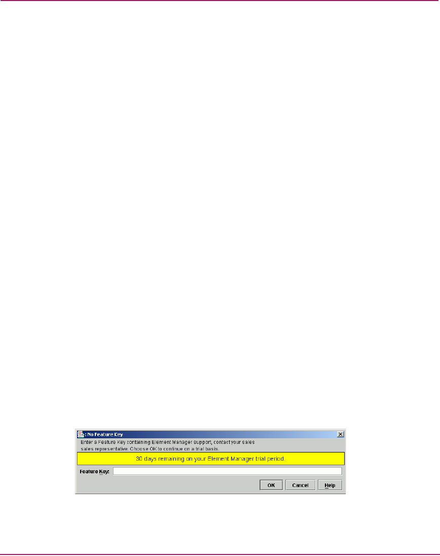 During the grace period, a No Feature Key dialog box (Figure 62) displays when