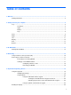 Table of contents 1 Welcome .......................................................................................................................................................... 1 Finding information ............................................................................................................................... 2 2 Getting to know your computer ..................................................................................................................... 4 Top .....................