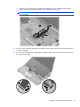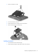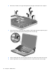 14. Reconnect the pointing stick cable (3) by inserting the cable into the ZIF connector and pressing