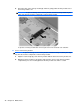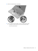 13. Reconnect the keyboard cable (1) by inserting the cable into the ZIF connector and pressing the