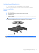 1. Insert the end of a paper clip (1) into the release access in the front bezel of the drive.