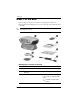 Setting up What’s in the box? Before setting up your projector, be sure your shipping box includes the following items. If the shipping box does not contain any of the following items, contact HP. you open the box and remove the contents, save the box in case you must ship the projector. ✎ After Identifying the contents of the box Item Function 1 Projector Displays images. 2 Remote control (includes two AAA batteries) Controls projector.