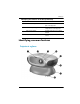 Reference Projector specifications (Continued) Video compatibility NTSC 3.58 MHz and 4.43 MHz PAL B, D, G, H, I, M, N SECAM B, D, G, K, K1, L HDTV (480i/p, 575i/p, 720p, 1080i) DVI with HDCP PC video up to SXGA (by DVI-I connector) IR receiver Front and back of projector Lamp 210-watt lamp 4000-hour average lamp life (to half of original brightness) Replacement lamp: L1731A Optics 1.7 to 2.0 throw ratio (distance/width) 1 to 10 m (3 to 33 ft) focus range 128% offset (relative to half-height) 1.