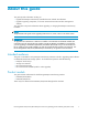 • Operating system type and revision level • Detailed questions For continuous quality improvement, calls may be recorded or monitored. HP websites For additional information, see the following HP websites: • • • • • http://www.hp.com http://www.hp.com/go/storage http://www.hp.com/service_locator http://www.hp.com/support/manuals http://h20293.www2.hp.com Documentation feedback HP welcomes your feedback. To make comments and suggestions about product documentation, please send a message to: .