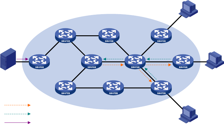 3. The routers along the path from the DR to the RP form an RPT branch. Each router on this branch
