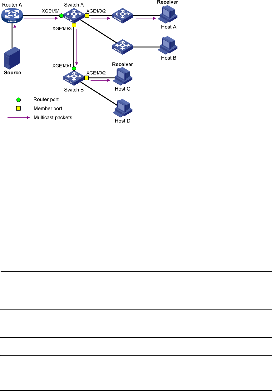 member ports. A switch records all its member ports in the IGMP snooping forwarding table.