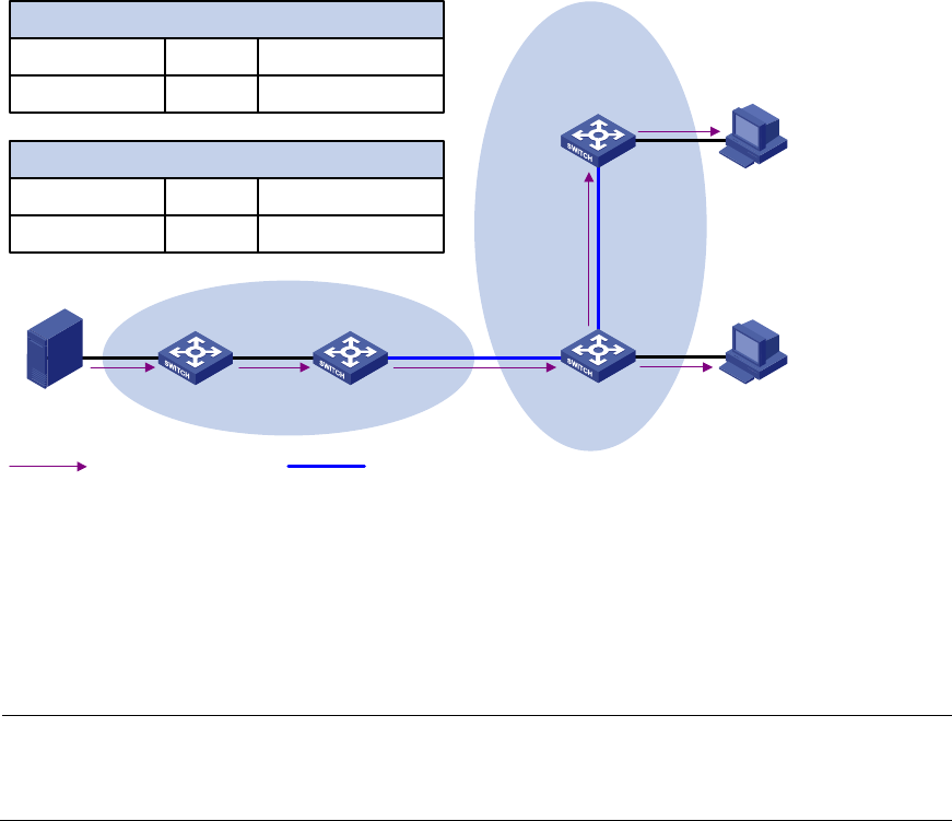 Routers forward the multicast data from a multicast source hop by hop along the forwarding tree, but